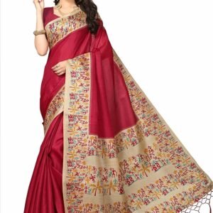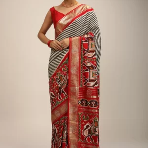 Red Saree In Silk With Multi Colored Patola Print And Diagonal Stripes