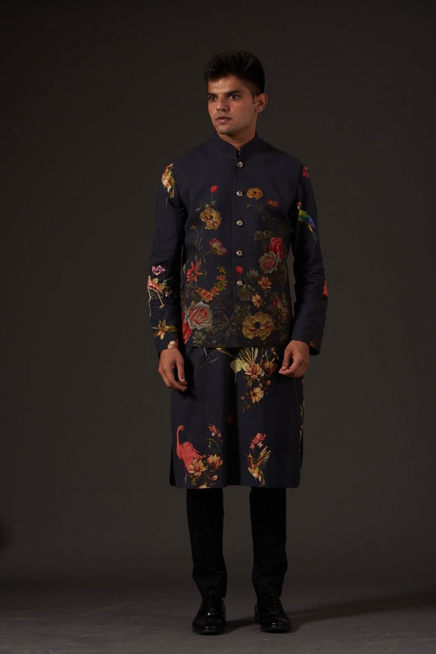 Black Floral Digital Printed Pure Cotton Bundi