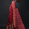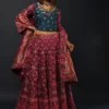 • Topped with a maroon brocade silk dupatta with woven diagonal stripes and patola printed border.