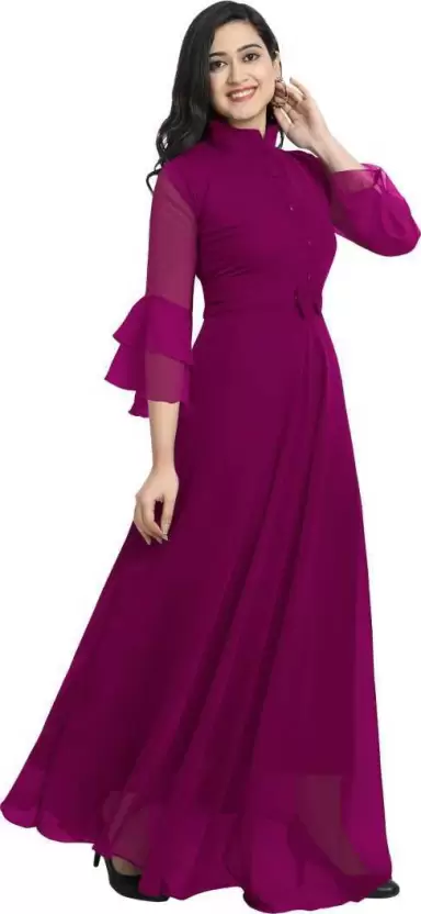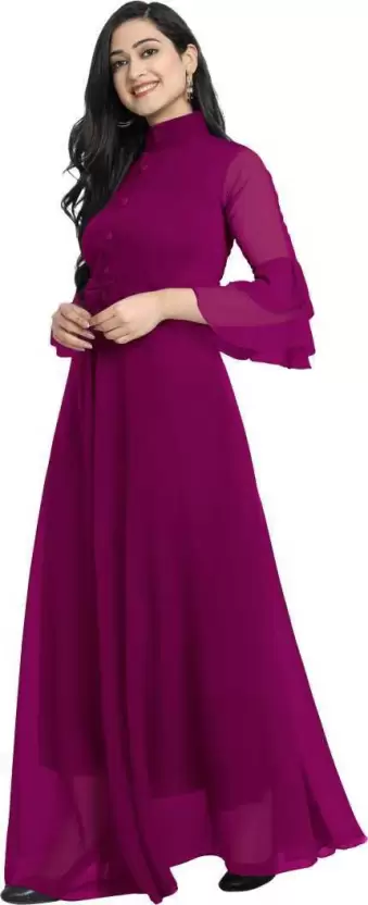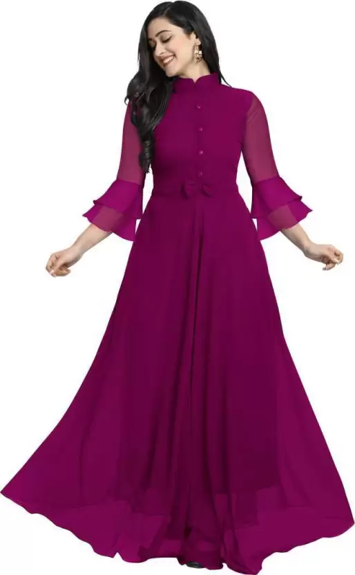 Dyed Georgette Stitched Anarkali Gown (Purple)