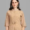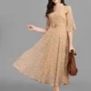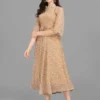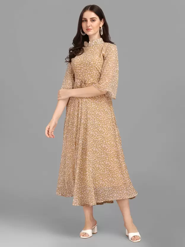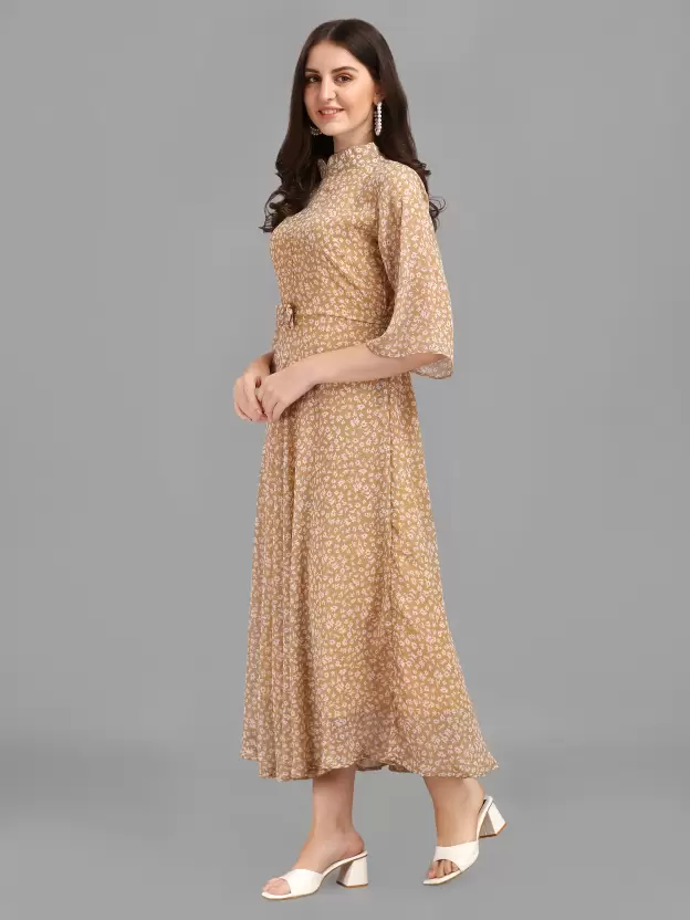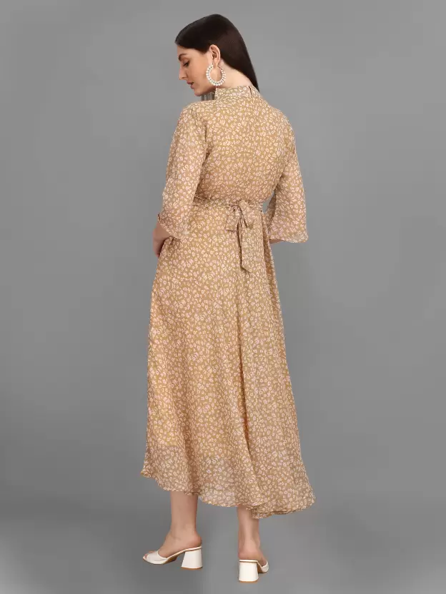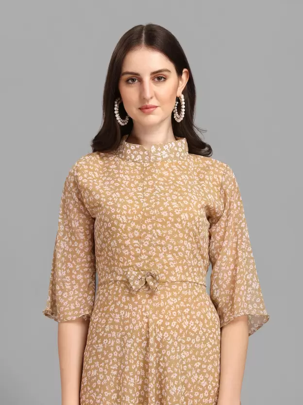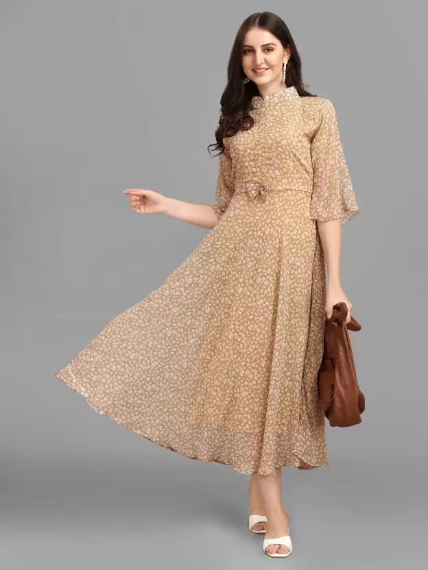 Georgette Stitched Flared/A-line Gown (Beige) Free Size