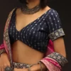 - Navy blue lehenga in silk with woven bandhani and brocade jaal.