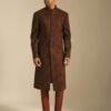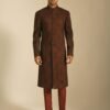 - Night Ruby Printed Sherwani in Textured Cotton Silk with Fabric Buttons