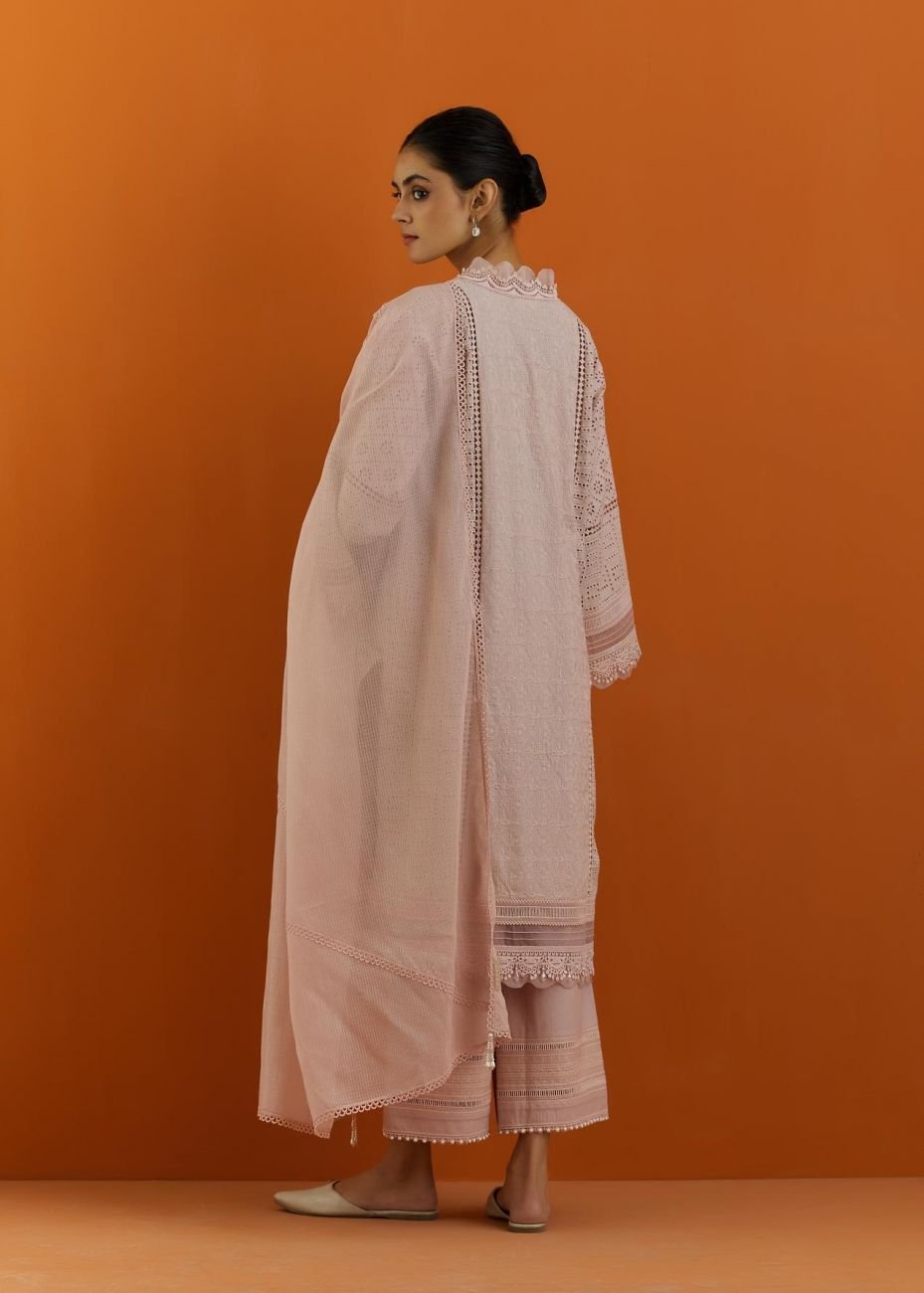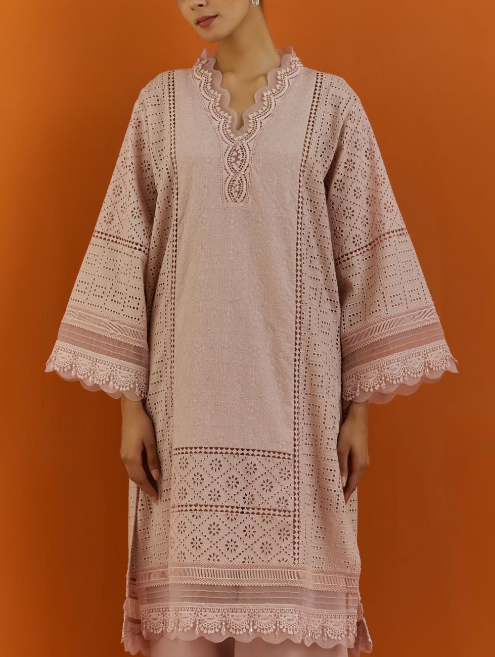 • Cutwork Straight Kurta set, bell sleeves and a plunging v-neckline