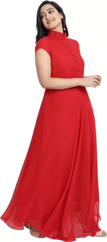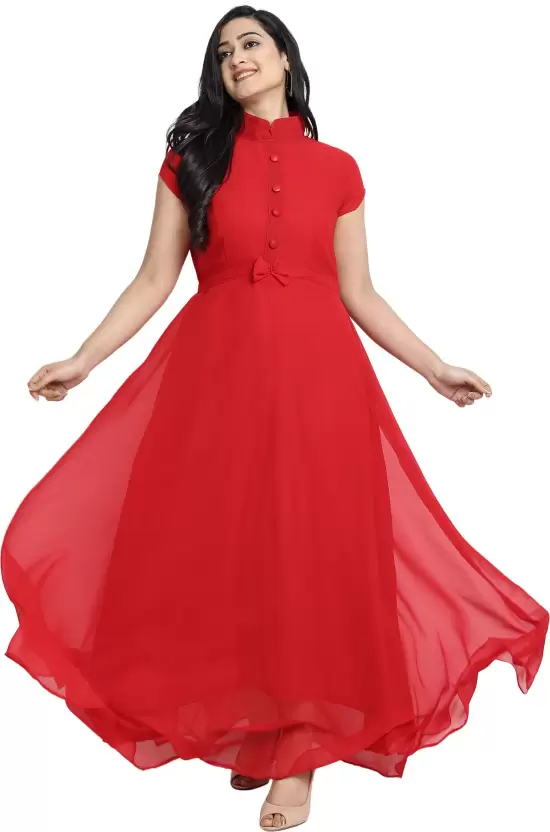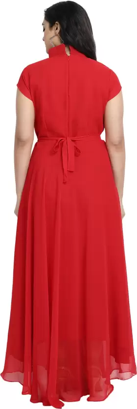 Solid Georgette Stitched Flared/A-line Gown (Maroon)